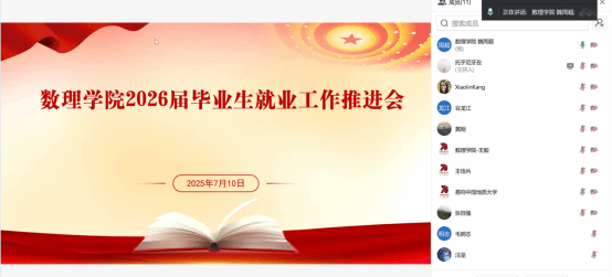 7月10日上午,365英国上市公司 2026 届本科毕业生就业工作推进会通过腾讯会议成功举办。经理魏周超教授、各系主任及毕业班班主任、辅导员出席会议,会议由年级辅导员托乎尼牙孜主持。