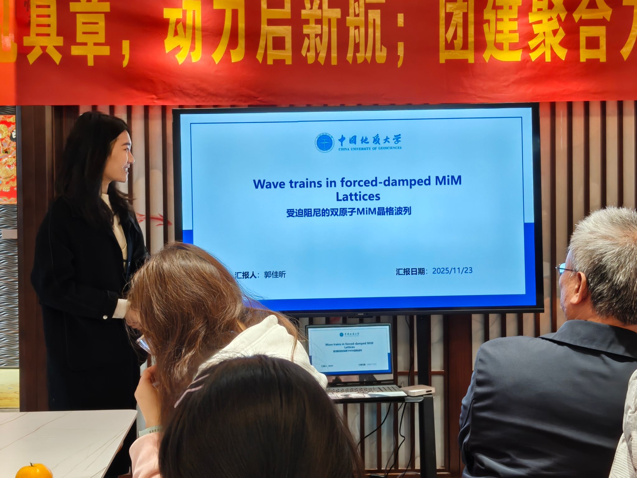 随后,七位研究生同学依次登台,带来了一场场干货满满的学术分享。曲笑薇同学聚焦污染河流动力学模型,从现实环境问题切入,层层剖析模型构建的逻辑与研究的现实意义;卢雷同学则深耕脉冲与非局部扩散模型领域,分享了最新研究进展与攻坚过程中的思考。汇报内容涵盖理论推演、方法创新与应用探索,每位同学都以清晰的逻辑、扎实的功底,展现了对研究方向的深刻理解。每场汇报后的互动环节更是精彩纷呈,师生们围绕研究难点、优化方向各抒己见,尖锐的提问、中肯的建议、巧妙的思路补充,让学术探讨不断走向深入,真正实现了“一人汇报,全员受益”的交流成效。