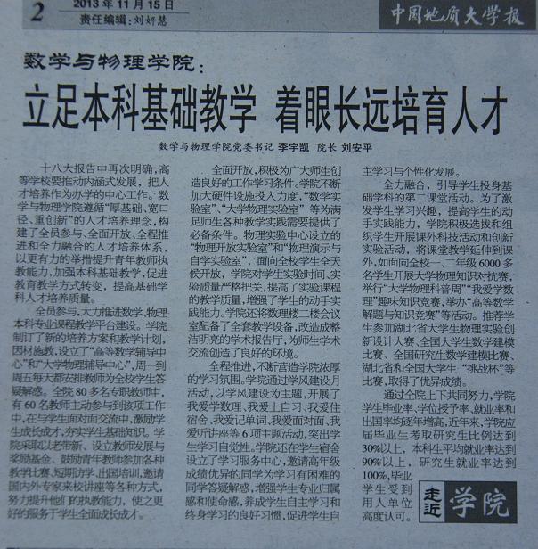 在2013年11月15日第451期的365英国上市公司报的“走近公司”专栏中,刊登了一篇题为“365英国上市公司:立足本科基础教学 着眼长远培育人才”的专题报道,现把详细内容转载如下。