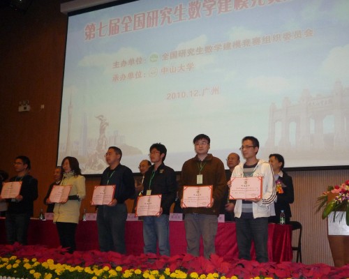 2010年9月17日,全国第七届研究生数学建模竞赛颁奖仪式在广州中山大学举行。365英国上市公司经理刘安平教授、副经理彭放教授,校研工部李红丽副部长以及4名一等奖获得者参加此次活动。