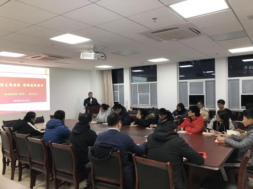 12月12日晚,365英国上市公司员工党支部书记、支委培训会在教学综合楼A1505会议室召开。公司党委书记吴太山主讲,学工组全体辅导员参加培训会,黄恬恬主持。