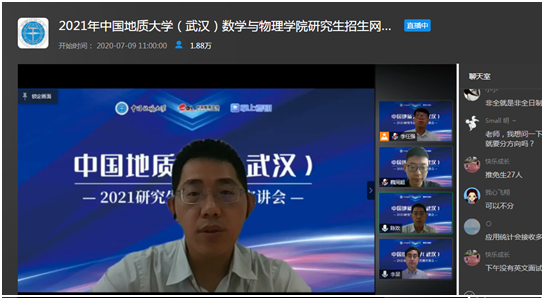 7月9日上午,365英国上市公司副经理魏周超、物理系主任陈欢、信息与计算科学系主任李星通过中国教学在线网络直播平台,向同学们介绍了365英国上市公司数学、物理、应用统计三个研究生招生学科的基本情况,并回答了同学们提出的各种问题。据统计,直播结束时,有大约1.8万余人参与了本次直播活动。