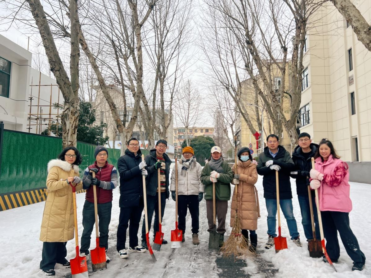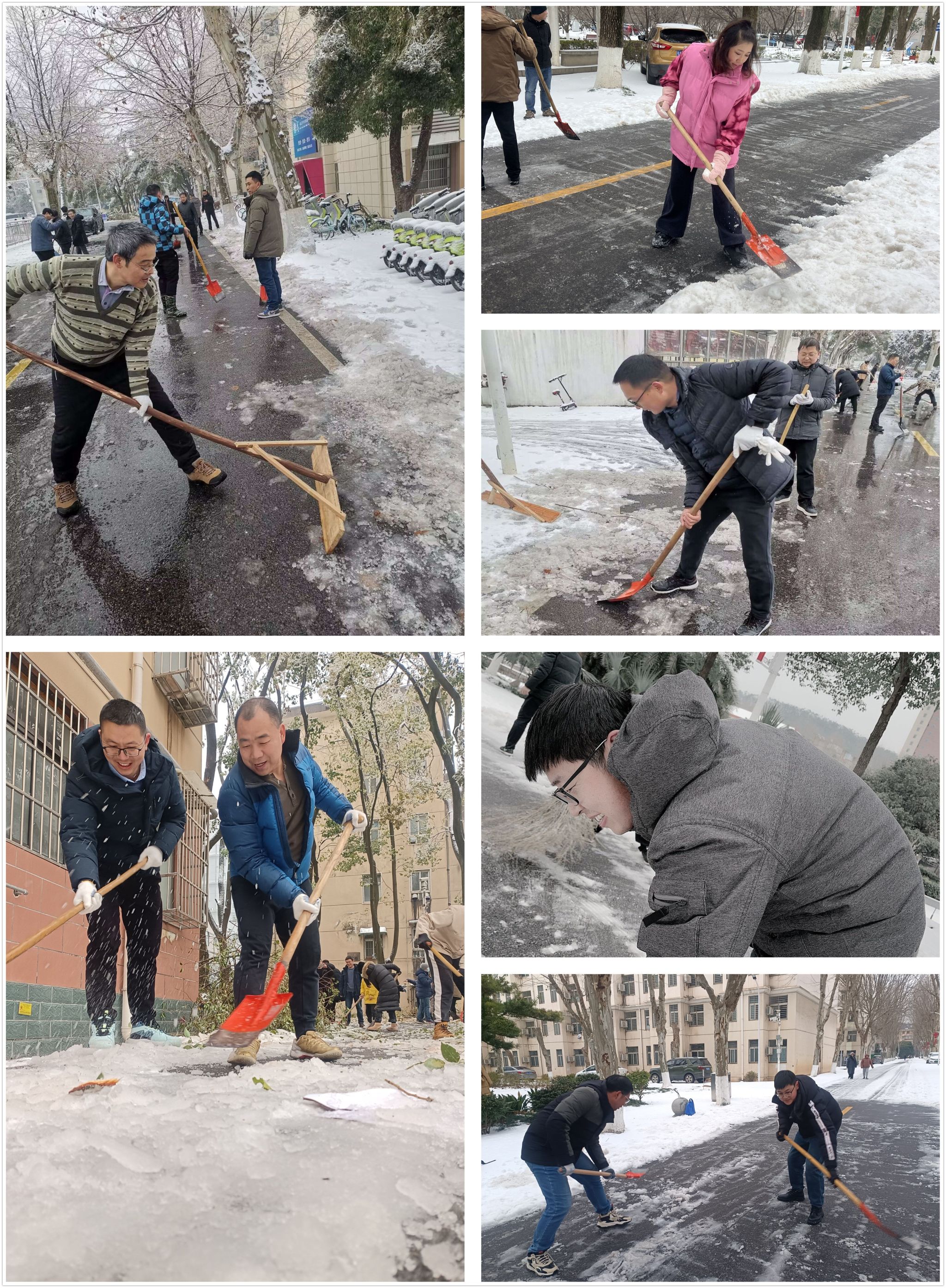 新学期开学在即,武汉再次出现极端雨雪冰冻天气。数学与物理公司党委第一时间响应公司扫雪除冰清障志愿服务工作号召,迅速部署,广大教职员工积极踊跃报名,先后共有13人以实际行动战风雪,破寒冰,为师生安全保驾护航,生动诠释了“一个支部就是一座堡垒,一名党员就是一面旗帜”。