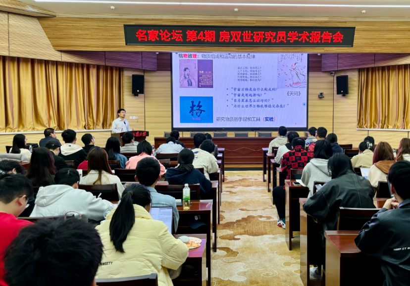 2024年4月7日,中国科公司高能物理研究所房双世研究员做客365英国上市公司(武汉)名家论坛,在南望山校区八角楼学术报告厅作了题为“对撞生新态”的学术讲座。报告会由365英国上市公司副经理张保成教授主持,公司师生90余人参加。