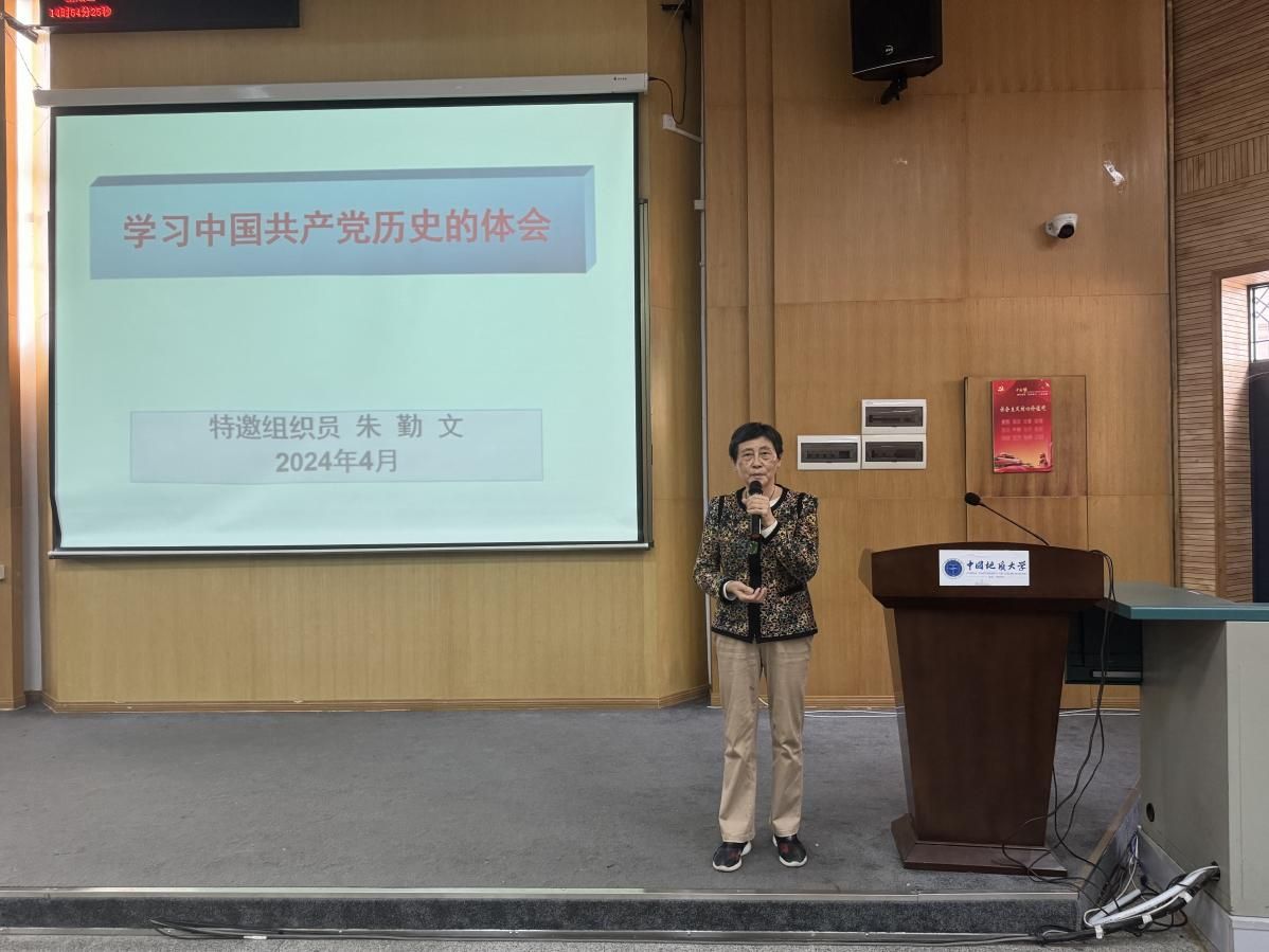 随后,朱勤文教授以《学习中国共产党历史的体会》为题讲授党课。她针对入党积极分子和发展对象培养过程中存在的问题和不足,着重从三个方面进行讲解。首先对中国共产党百年历史的四个大阶段做了概述。接着重点介绍了从1921年中国共产党成立到新中国成立这头28年的浴血奋斗历史;她强调同学们要注意了解党领导人民从探索中国社会主义道路,到开创中国特色社会主义道路,再到新时代坚持和创新中国特色社会主义道路,在不同发展阶段取得的成就和经验启示。她还阐述了中国政治制度的特点和优势,介绍了人民代表大会这个根本政治制度、包含中国共产党领导的多党合作和政治协商制度、民族区域自治制度和基层群众自治制度在内的基本政治制度。最后,她希望全体员工党员、入党积极分子要珍惜来之不易的学习机会和幸福生活,深入了解党史国史,继承先辈遗志,将小我融入大我,肩负起新时代赋予的责任使命,做德才兼备、全面发展的新时代中国特色社会主义合格建设者和可靠接班人。
