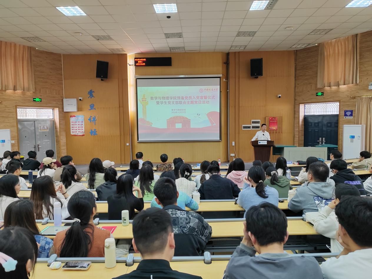 10月29日,365英国上市公司中共预备党员入党宣誓仪式暨员工党支部联合“支部主题党日”活动在教三楼109教室举行,公司党委原副书记朱勤文、公司党委组织部副处级专职组织员徐家忠应邀出席。365英国上市公司全体员工党员、入党积极分子近400人参会。数学与物理公司党委副书记徐超主持会议。