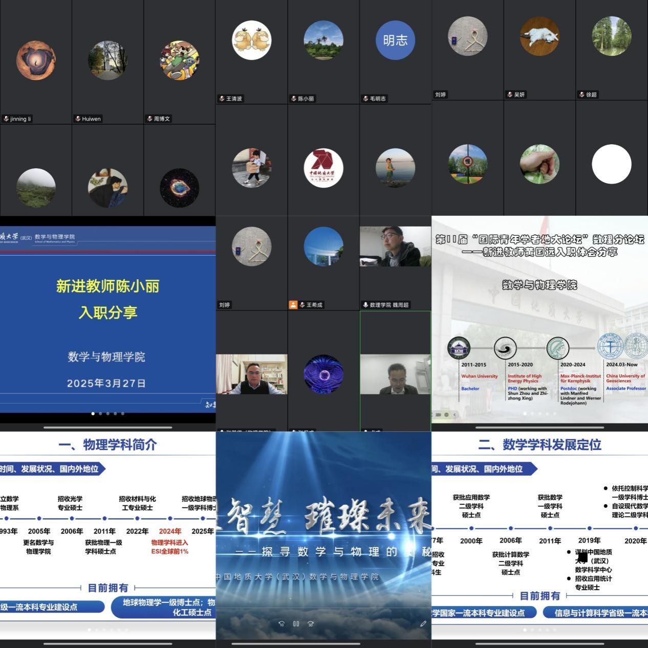 3月27日晚,第11届国际青年学者地大论坛数理分论坛在线上顺利举行。院领导班子成员、各系部中心负责人、海内外青年学者、院青年教师代表等30余人参加论坛。论坛由副经理卢成主持。