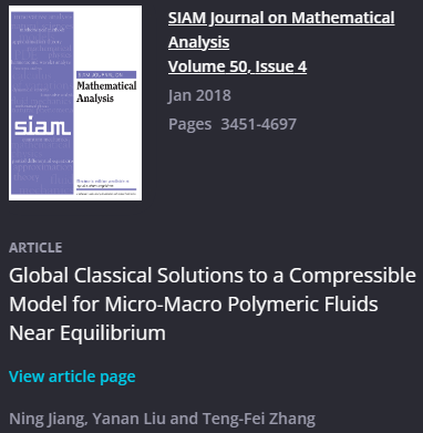 张腾飞副教授为公司2005级数学与应用数学系培养的优秀毕业生。从事非线性偏微分方程的数学理论研究,包括分子动理学理论、宏微观耦合模型、复杂流体力学方程组等方面。主持国家自然科学基金面上与青年项目各1项,省自然科学基金面上项目1项。学术成果发表在国际高水平数学类期刊Archive for Rational Mechanics and Analysis(简称ARMA,2篇)、Mathematical Models & Methods in Applied Sciences(M3AS)、SIAM Journal on Mathematical Analysis(SIMA)、Calculus of Variations and Partial Differential Equations (CVPDE)、Journal of Differential Equations(JDE)、Analysis and Applications、Zeitschrift für angewandte Mathematik und Physik、Journal of Non-Newtonian Fluid Mechanics等。