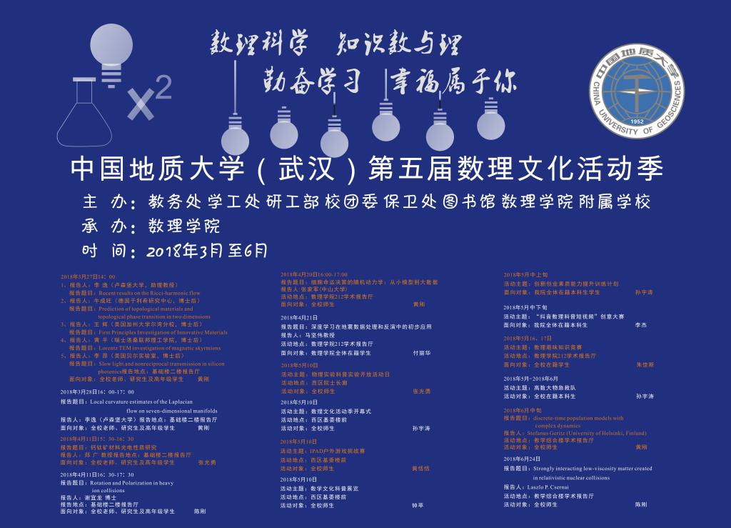 365英国上市公司(武汉)第五届数理文化活动季在2018年3月到6月举行。5月10日14:30在西区365英国上市公司楼前举行户外物理实验科普展暨数理文化活动季开幕式。