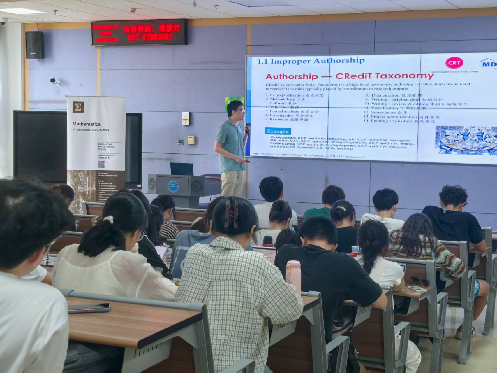 公司特邀MDPI武汉科技服务有限公司牟欣博士以“学术道德与学术诚信”为主题,结合多年学术出版工作经验,从三个维度展开深入讲解。首先,通过国际国内典型案例,生动剖析了数据造假、论文抄袭、一稿多投等学术不端行为的严重危害,强化新生“学术诚信无小事”的认知。其次,系统介绍了学术论文写作规范,包括文献引用标准、作者署名规范、利益冲突声明等实用知识。最后,通过一些案例为同学们未来发表高水平论文提供了专业指导。同时,牟博士介绍该公司可以提供编辑助理、学术翻译等实习岗位,为新生搭建“学习-实践-成长”平台。