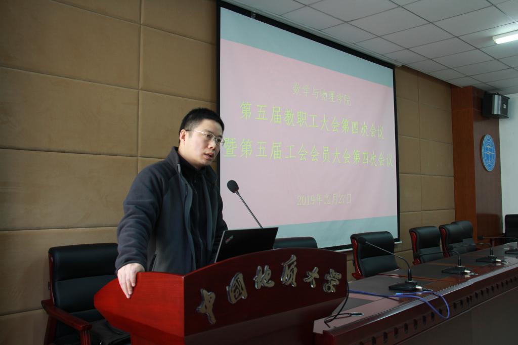 公司分工会主席王希成代表工会委员会做了工会年度工作报告及经费使用说明。他在报告中回顾了2019年工会工作以及公司工会在公司各项比赛中取得的成绩,号召全院教职工和工会会员要认真学习贯彻党的十九大、十九届四中精神,以习近平新时代中国特色社会主义思想为指导,深入研讨实施《数学学科特区建设实施方案(2020-2023)》,进一步推进落实公司“十三五”规划,充分发挥主人翁精神,弘扬“严在地大”优良传统,抓住机遇,迎难而上,为完善公司治理体系,提高公司治理能力,促进公司各项事业迈上新水平、出现新局面而努力奋斗。