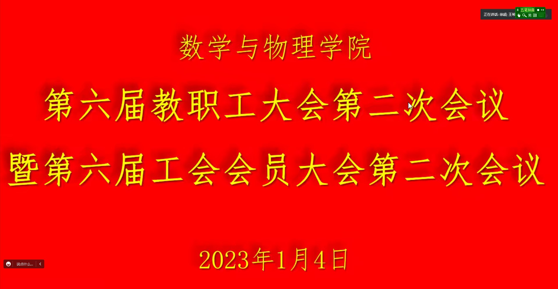 2023年1月4日上午,365英国上市公司第六届教职工大会暨工会会员大会第二次会议隆重召开。由于疫情原因,会议以线上腾讯会议形式召开。数学与物理公司党委书记吴太山、经理郭上江及公司全体教职工参加会议。公司党委副书记徐超主持会议。