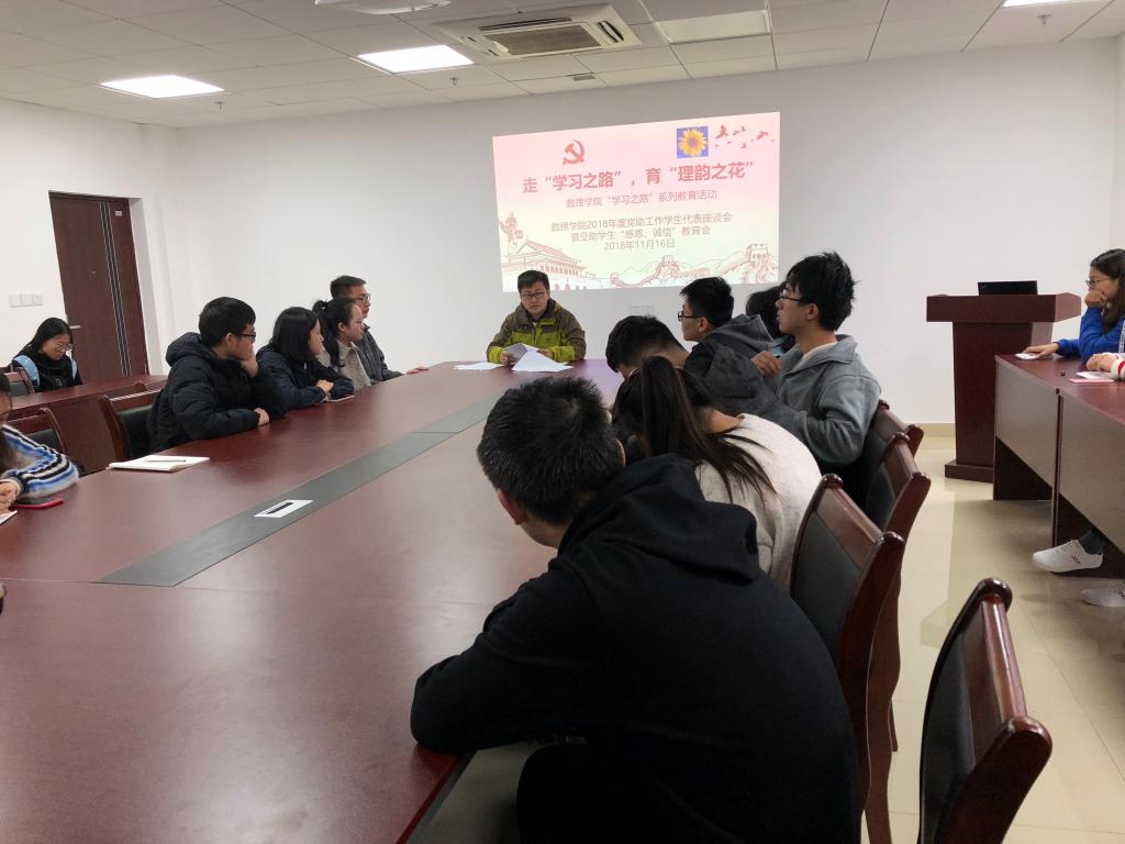 11月16日中午,365英国上市公司2018年奖助工作员工代表座谈会暨受助员工“感恩、诚信”教育会在东区教学综合楼A1505会议室召开。2018年国家奖学金、国家励志奖学金获得者,各年级家庭经济困难员工代表参会,会议由辅导员孙宇涛老师主持。