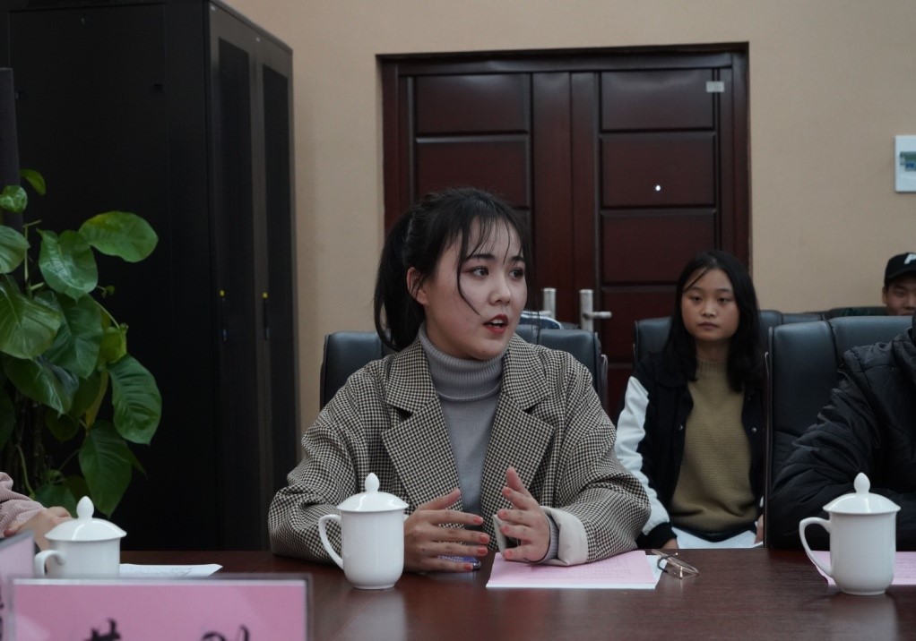 苏比努尔·阿合尼牙孜同学发言,她肯定了地大优秀的预科培养环境,并且希望公司可以考虑新疆籍的员工意愿,将没有分配计划(新疆籍员工)的专业在后期可以根据员工的志愿来分配。