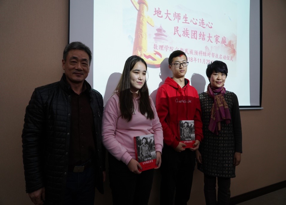 11月29日下午四点,公司“地大师生心连心,民族团结大家庭”2018级少数民族预科生结对帮扶活动启动仪式在东综A701顺利举行。公司党委统战部部长唐勤、公司党委学工部(党委统战部)副部长蒋怀柳,数学与物理公司党委书记吴太山,经理刘安平、副经理程永进、副经理黄刚、副经理张光勇、党委副书记徐超,公司党委委员、工会主席王希成、学工组成员以及2018级28名结对预科生出席启动仪式。数学与物理公司党委副书记徐超主持仪式。