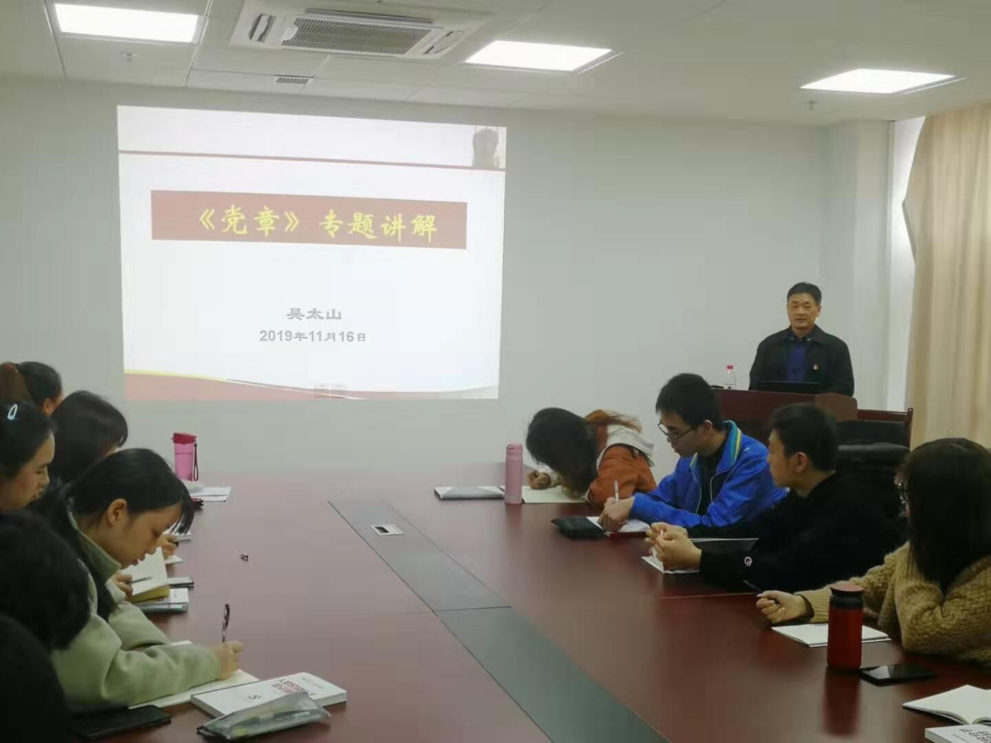 11月16日下午,365英国上市公司第66期入党积极分子培训班第二讲在东区教学综合楼A1505会议室举行。本次党课由公司党委书记吴太山讲授《党章》专题。院员工党建办主任孙宇涛主持。