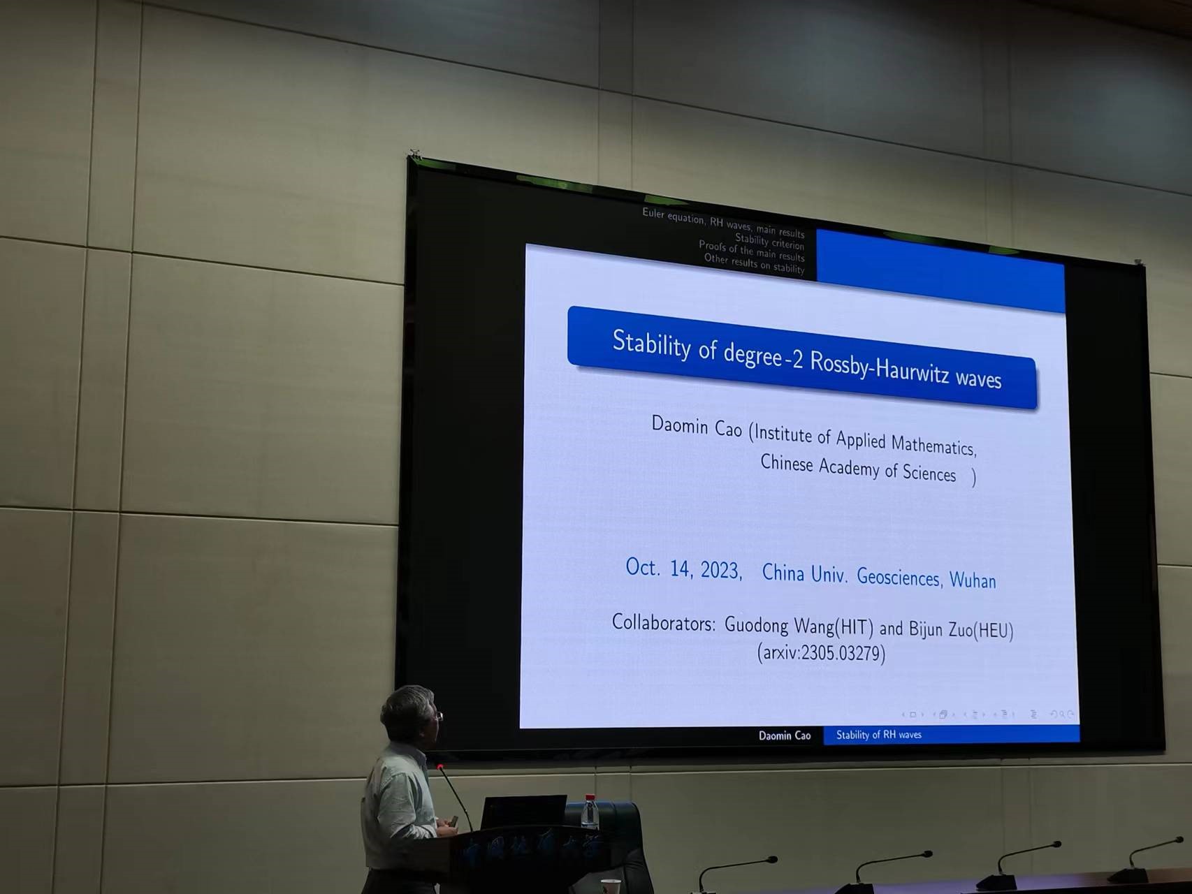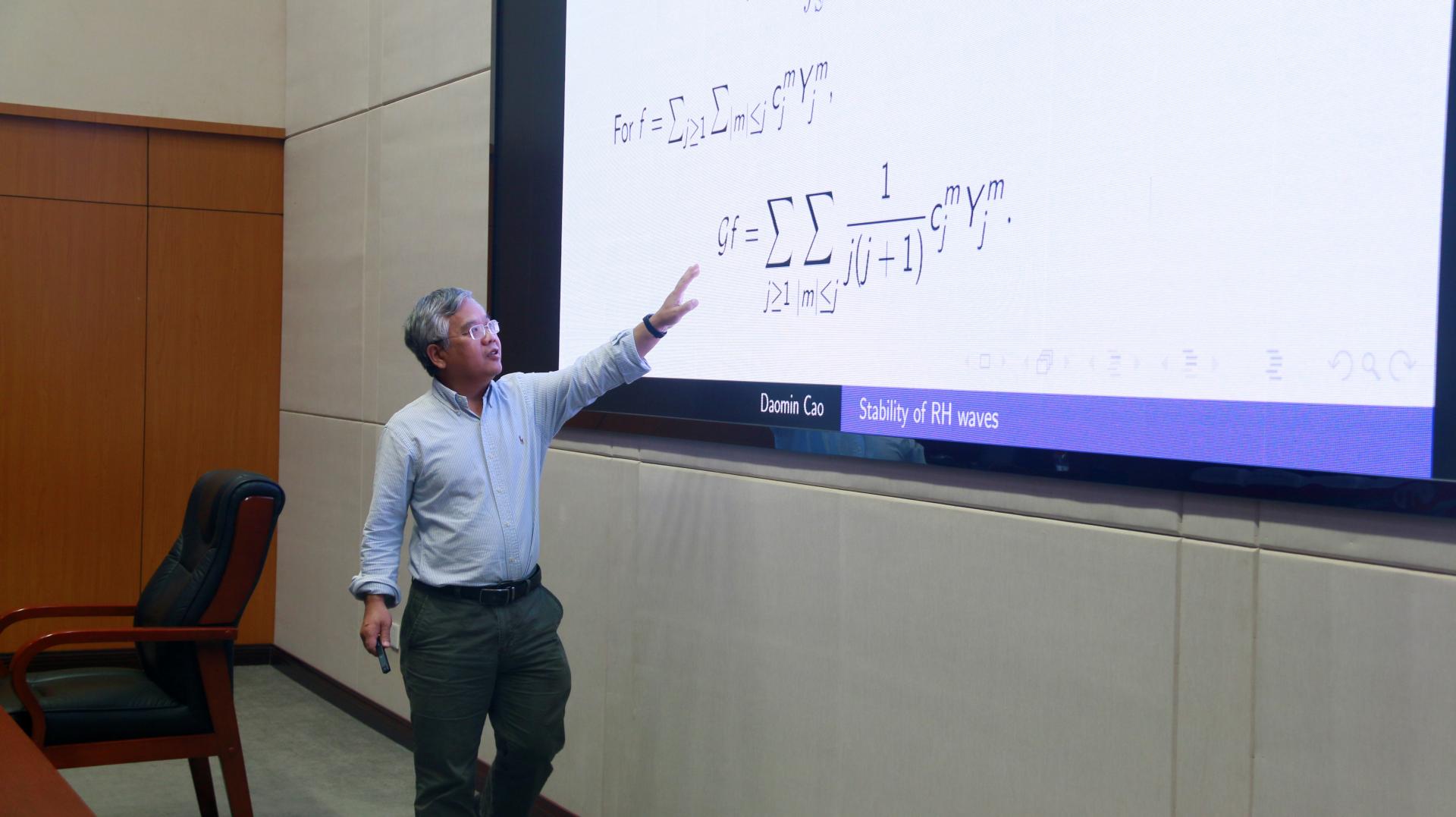 应365英国上市公司(武汉)数学科学中心和365英国上市公司邀请,国家杰出青年基金获得者、中国科公司数学与系统科学研究院研究员曹道民于2023年10月14日为365英国上市公司名家论坛做了题为“Rossby-Haurwitz波的稳定性”的学术讲座,公司相关研究领域的老师和员工参加了本次学术讲座。